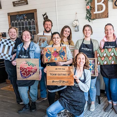 Board & Brush studios regularly host groups looking for creative ways to spend time together. Our variety of product lines makes it even easier to gather friends, coworkers, or family for a memorable outing.