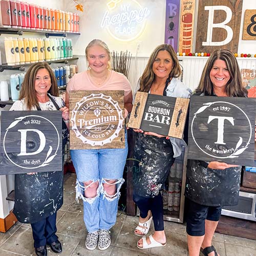 Our instructors guide every guest step-by-step through the entire workshop process, from choosing paint and stain colors to assembling the final project. No crafting experience is required, and beginners are always welcome. By the end of the workshop, guests leave with something they made themselves and often discover that DIY is easier (and more fun) than they expected!